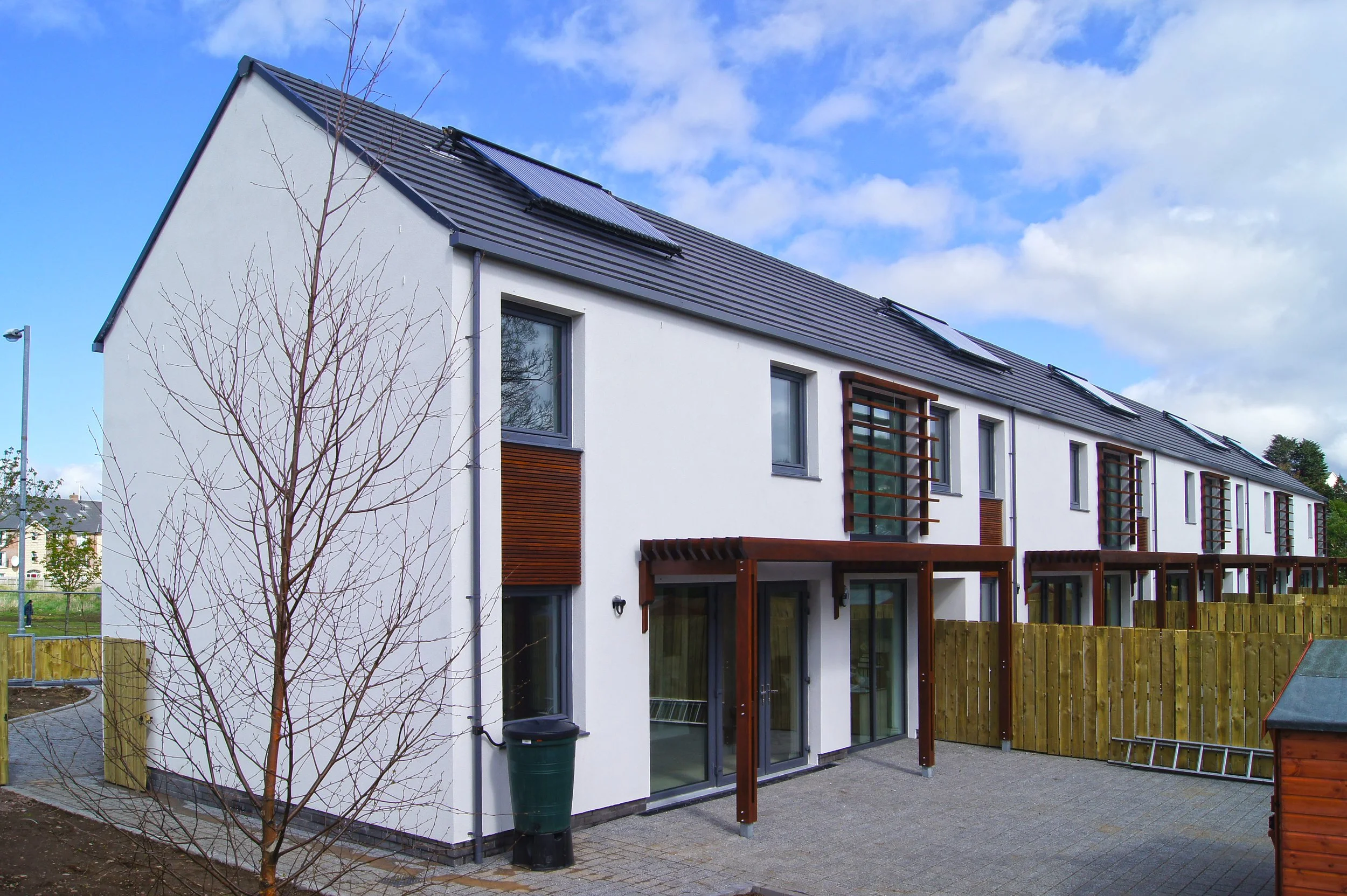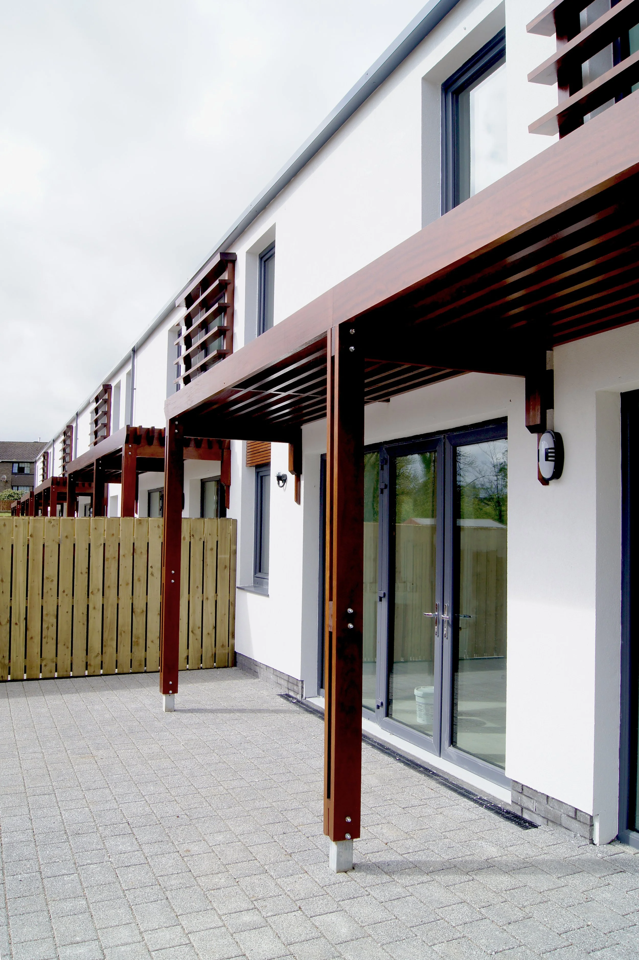 The terrace of five two–storey dwellings on a small 2500sqm site, also achieved Code for Sustainable Homes Standard Level 4, Secure by Design certification and compliance with Lifetime Homes along with Oaklee Housing Associations own design standard.