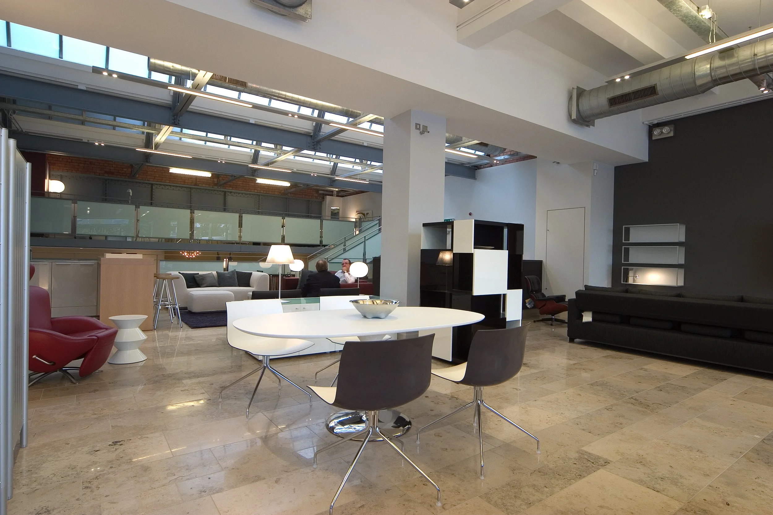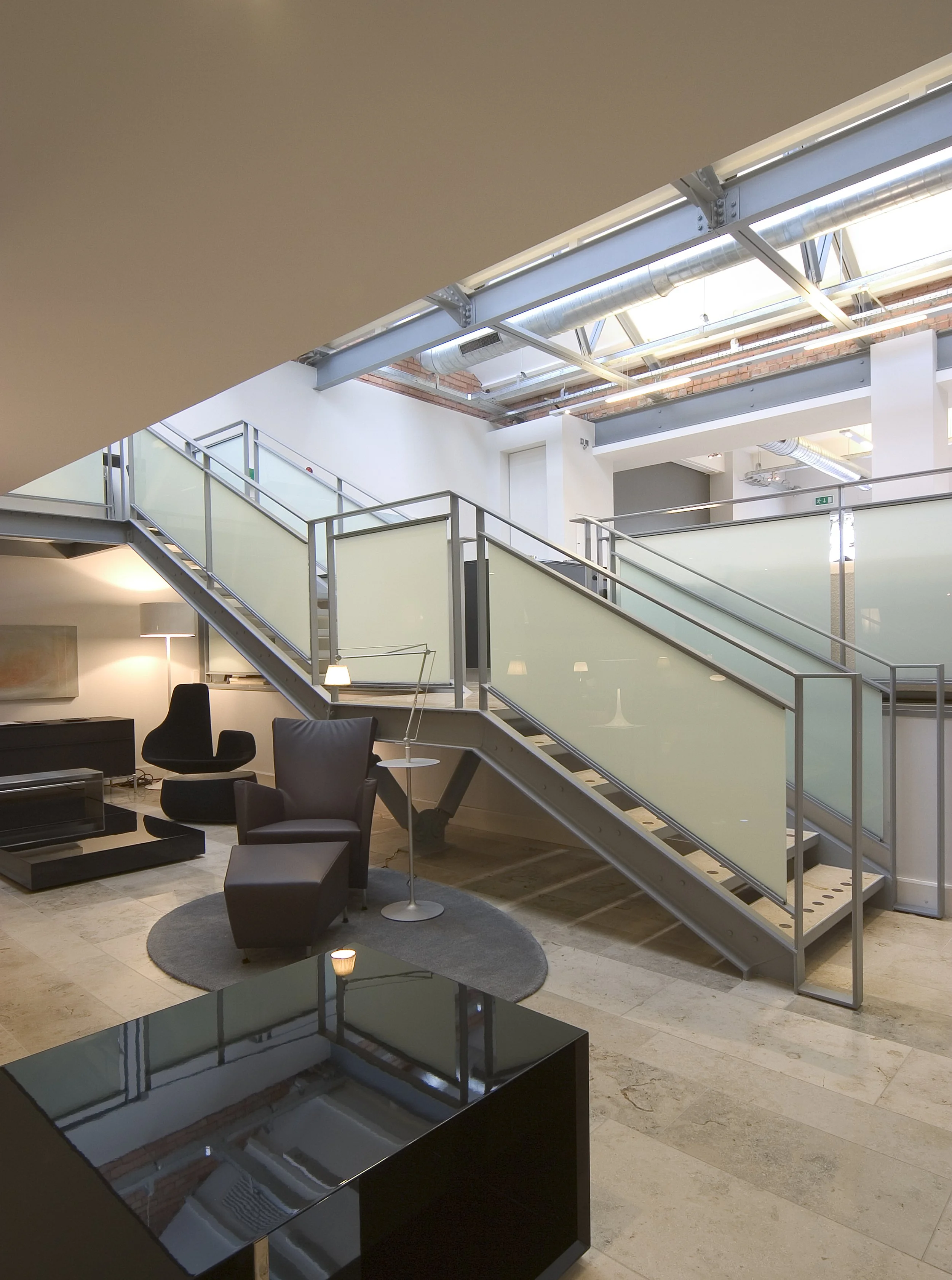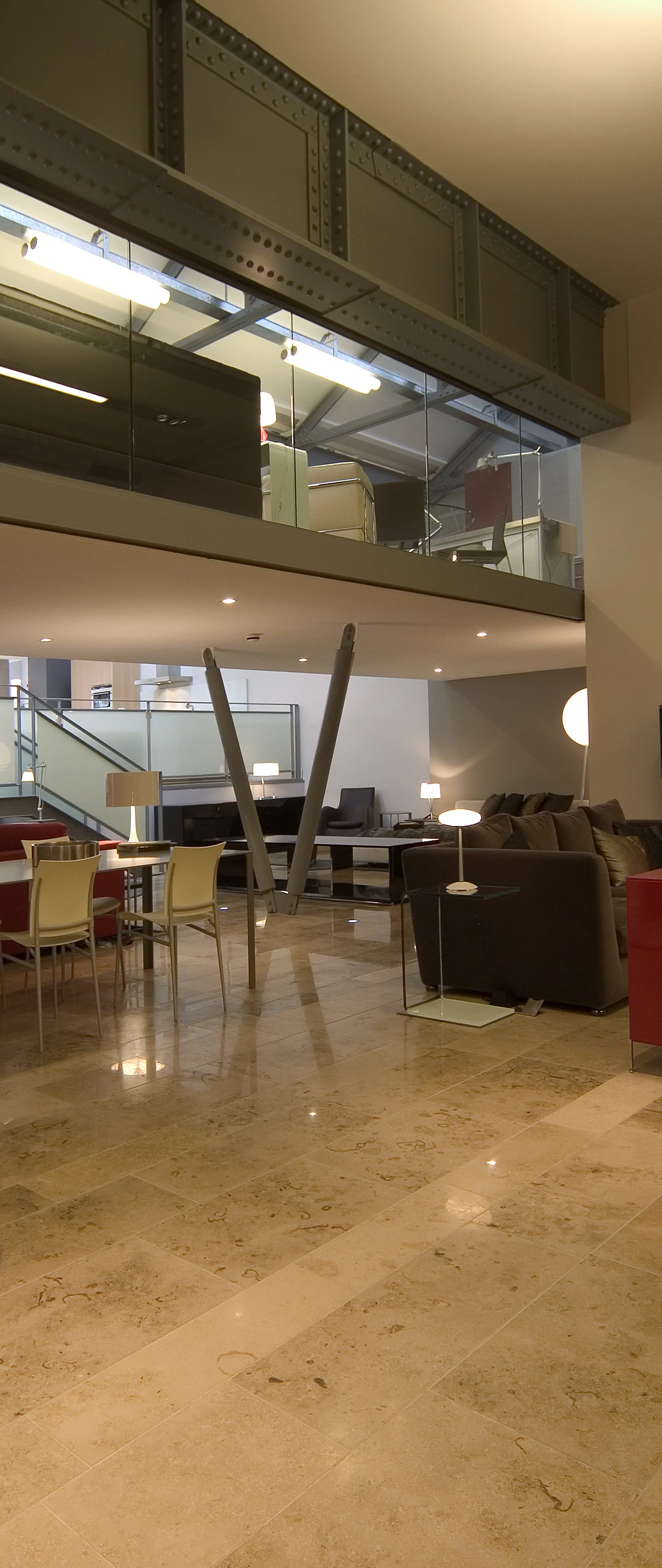 During design and construction we worked closely with our design-conscious client in choosing materials, finishes and colours that would complement and enhance the existing building shell and provide an appropriate backcloth for display of high end furniture.